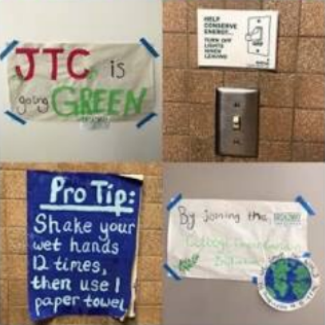 Urquart started several initiatives in the WJC theater department to make it greener. She replaced the incandescent lights in their lobby with LED and saved the incandescent bulbs for art projects. In their makeup department, they began using more eco-friendly practices such as using homemade makeup remover and cleaning supplies made from natural products, in addition to reusing makeup remover cloths and laundering the application sponges to be used again. Urquart has also worked to include signage throughout the theater, reminding students, faculty, and visitors to engage in green practices like turning off the lights when they leave a room. In addition, their costume department collected scraps of fabric that could not be reused, braided them into ropes, and donated them to their local animal reuse and adoption center, KC Pet Project, to be used as dog toys. They also collaborated with Mallin Companies, donating their used hardware to be melted down, remolded, and sold again. Finally, in October 2017, Urquart collaborated with the Physics Department to host an event called Cardinal Karaoke that used solar-powered light.