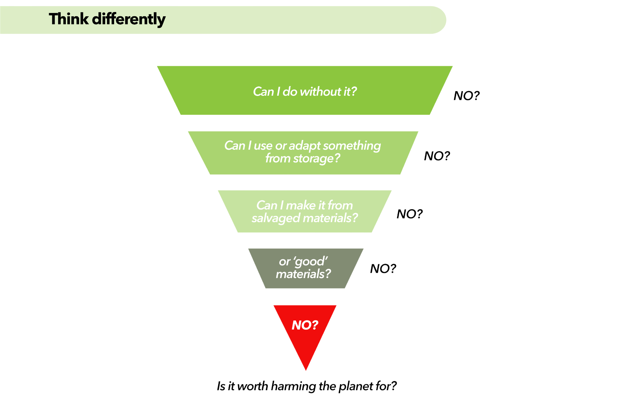 Allocate extra budget for sourcing second-hand items and picking them up, ensuring funds are spent on reuse rather than new materials.